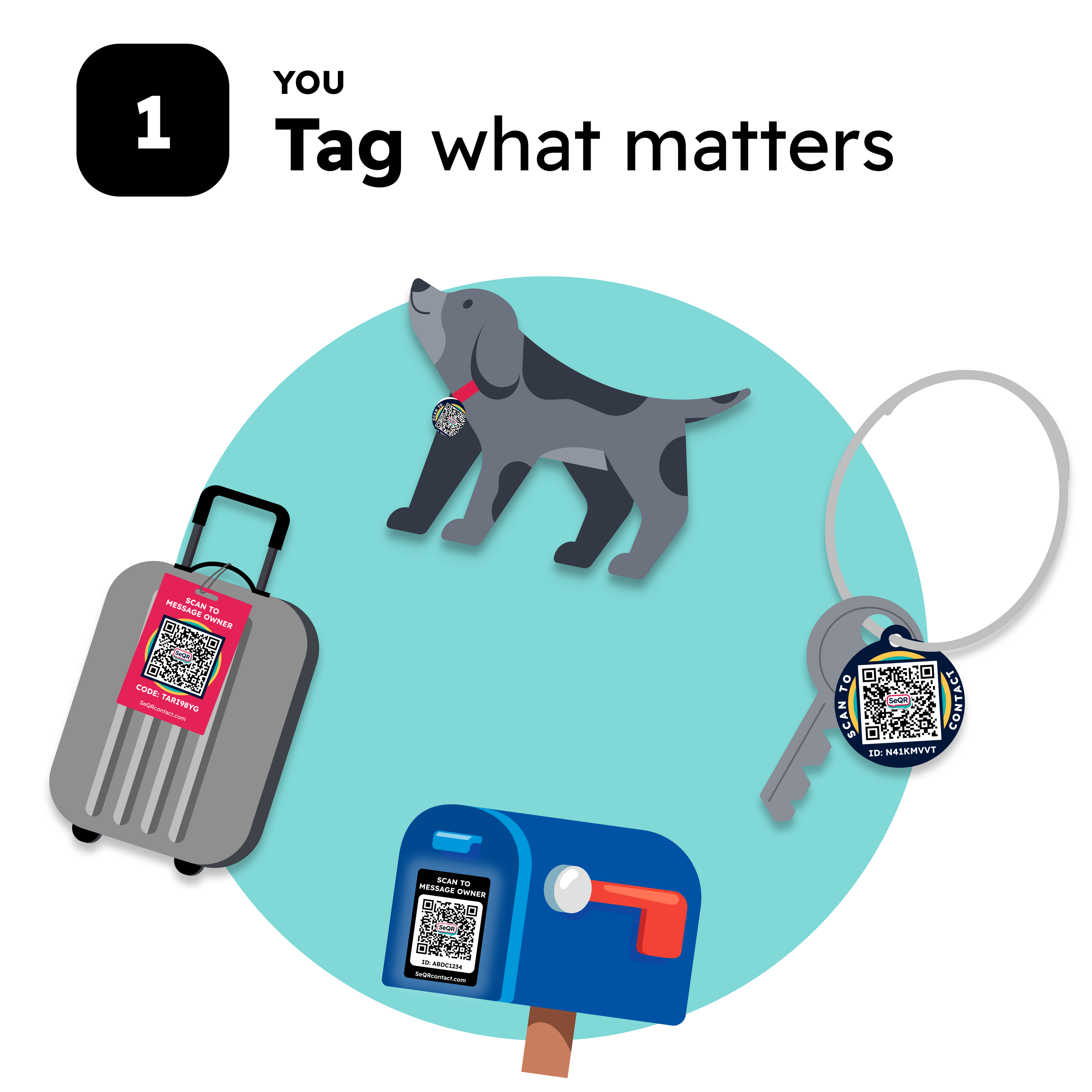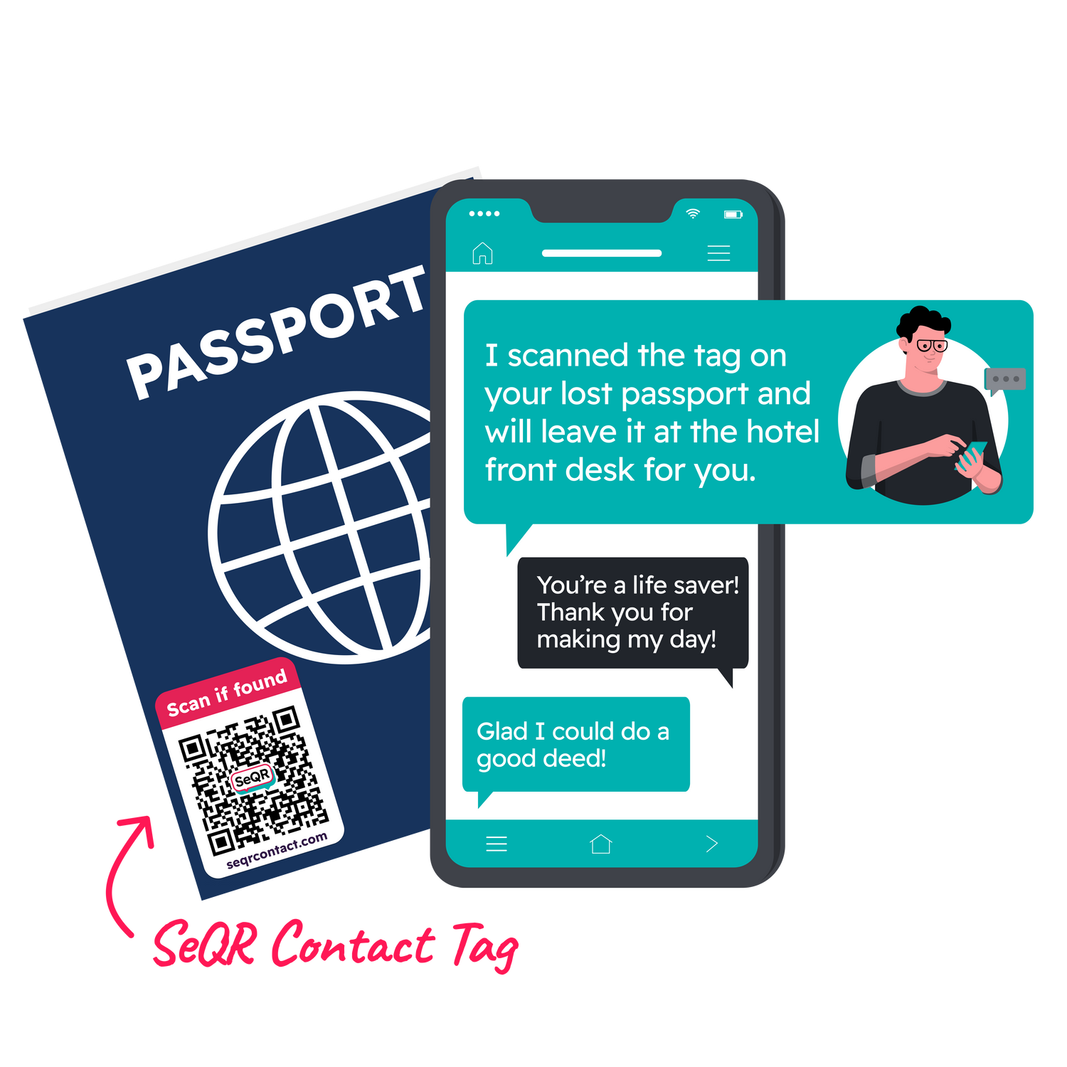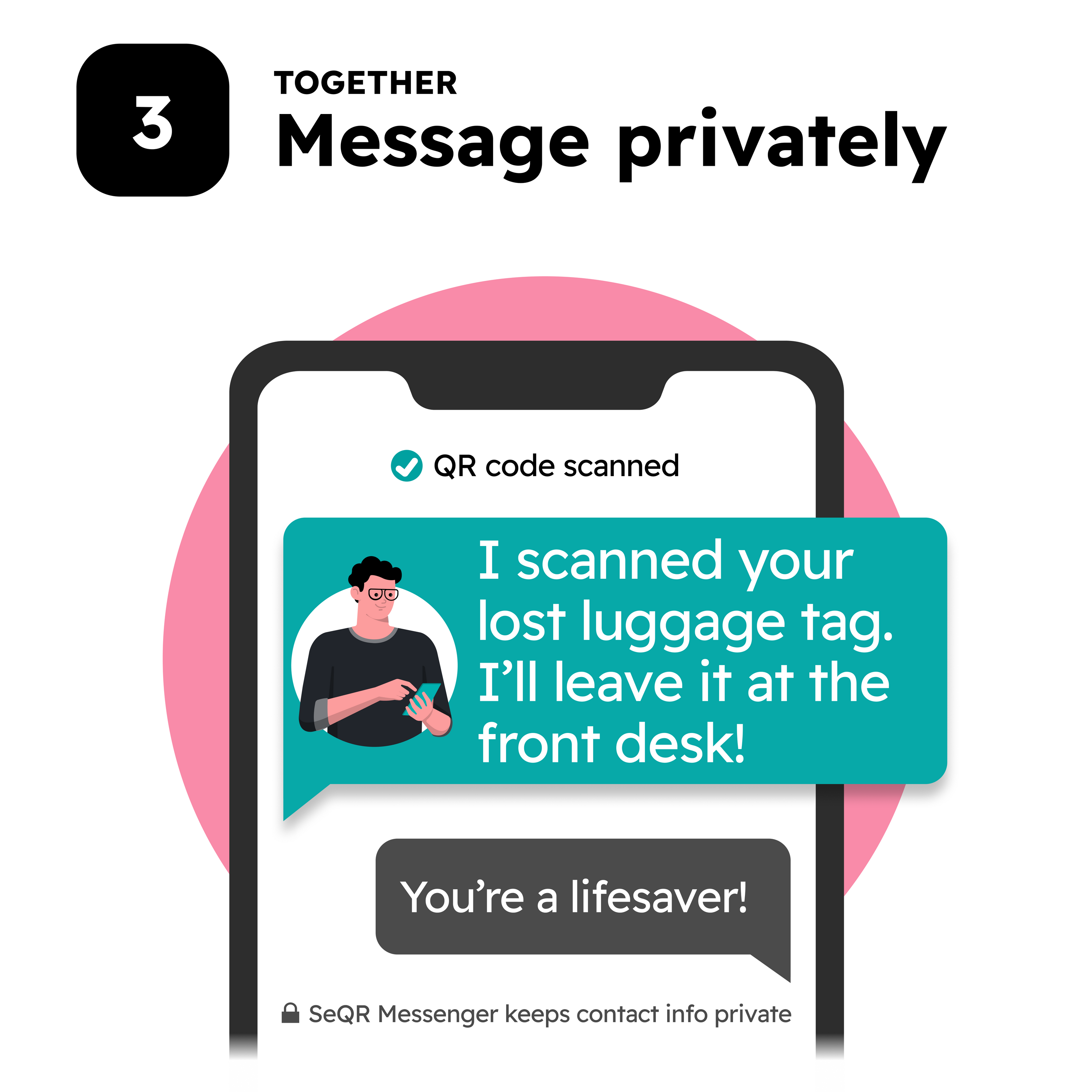 SeQR tags connect you to helpful humans, like finders of lost items—privately and securely.