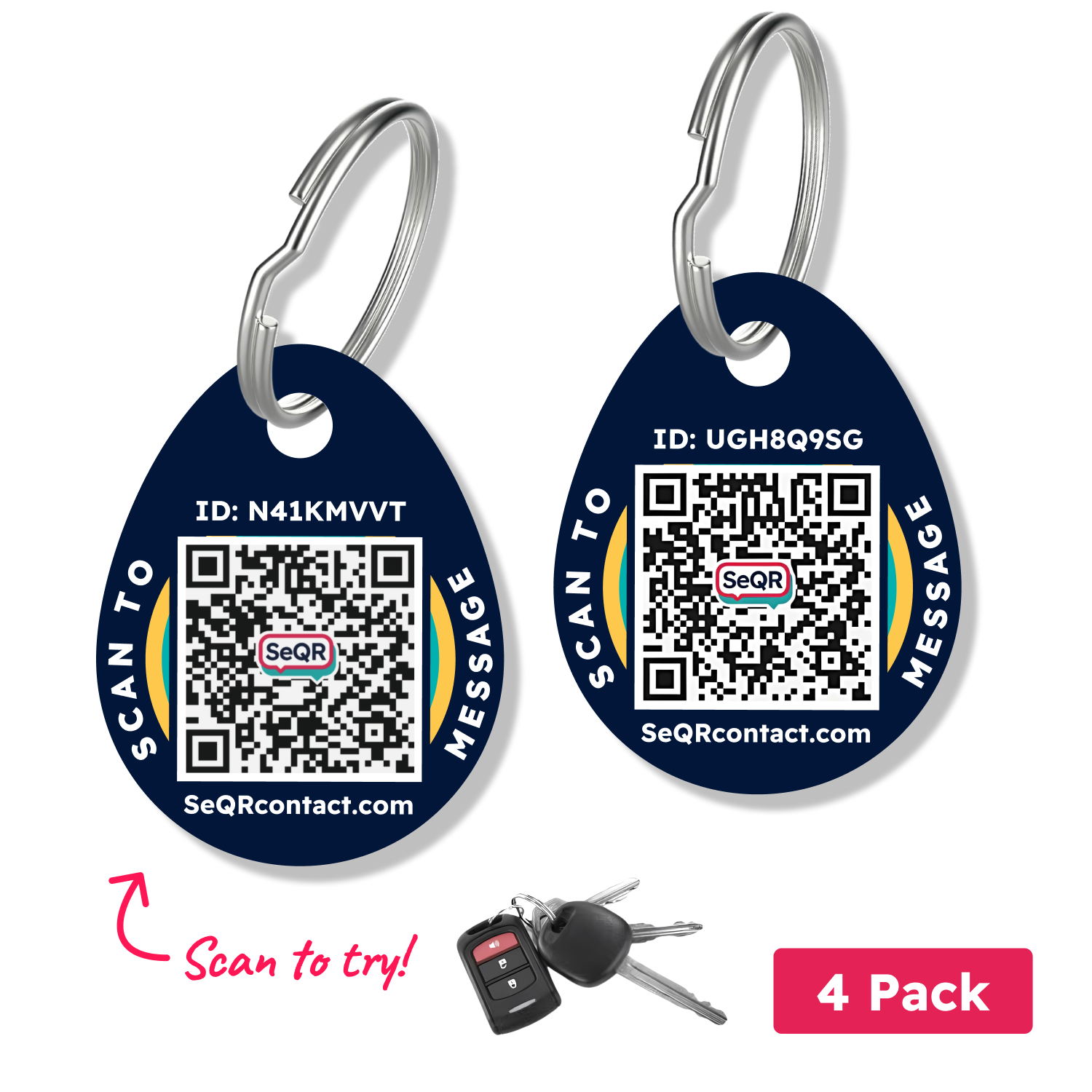 - 2, 4, or 6 SeQR Smart Keychain Tags with unique QR codes
