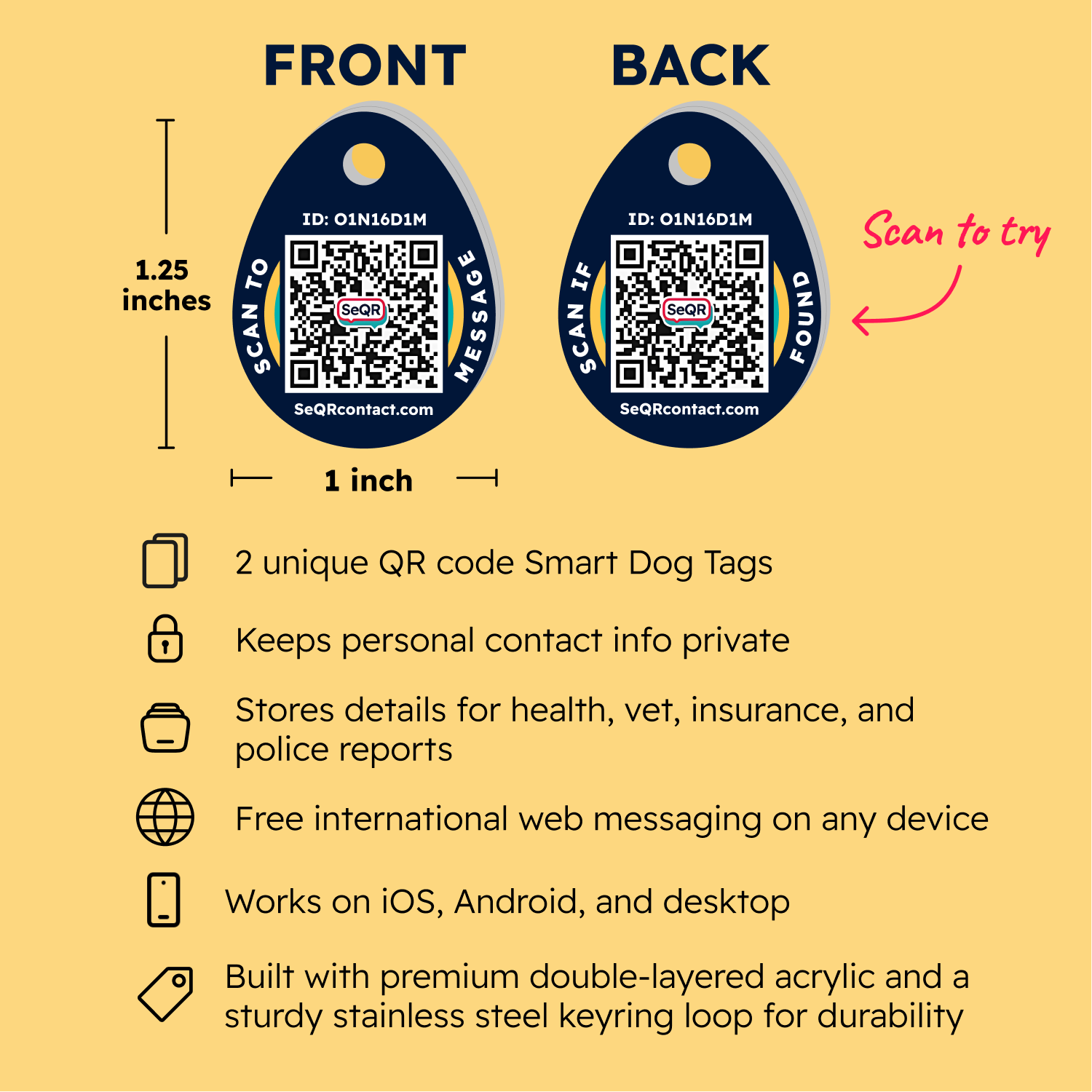 Set up in seconds with SeQR’s one-scan activation. Each unique QR code links to your account, letting you customize messages, log pet details, and stay organized. It works globally—no apps, calls, or fees—perfect for all pet adventures.
